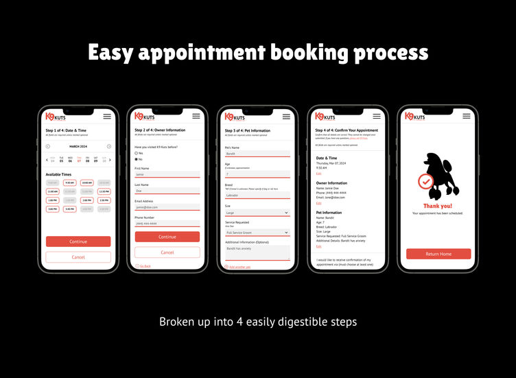 K9 Kuts is near and dear to me because the owner/operator is my mother. She's been grooming dogs all my life, and has been running her own business for most of that--but she never had a logo made! So while I was in college, I took the opportunity to make her one. Later, I would support her in other ways including business cards, signage, and advertising material.